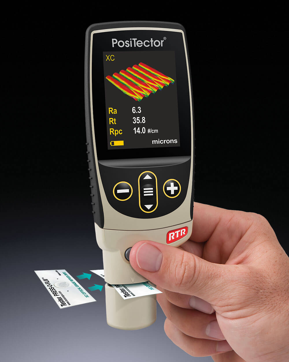 The PosiTector® RTR 3D Replica Tape Reader is an advanced digital instrument engineered for precise measurement and recording of 2D and 3D surface profile parameters on blasted or textured coatings. Using Testex Press-O-Film™ replica tape, this digital spring micrometer provides fast, reliable, and repeatable readings without the need for calibration adjustments in most applications.